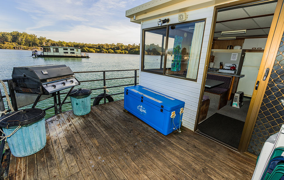 The open plan living area is a space where you can relax on the lounge suite and watch a movie on the LCD television or share a meal at the dining table with bench seats. The front deck is a great place to share a cold drink while soaking up the relaxing atmosphere of the Clyde River while cooking a shrimp on the three/four burner barbeque.